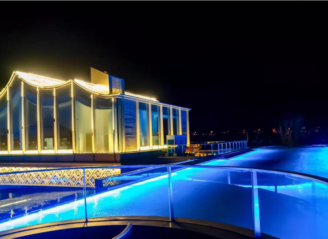 藍(lán)、深藍(lán)、星光點(diǎn)點(diǎn);風(fēng)、微風(fēng)、徐徐展開(kāi),這不僅是一個(gè)展示中心,更是玉龍山下華僑城對(duì)自然、對(duì)品質(zhì)、對(duì)旅居的一次完美踐行和致敬。