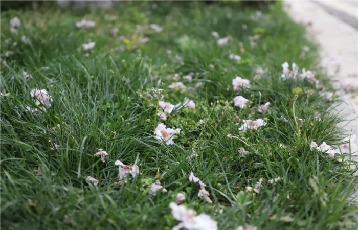 走進祥和領域首先映入眼簾的不是那一樹樹盛開的楸木,而是隨風飄落下來的一朵朵楸木花。她們輕輕的落在了草地上,落在了灌木叢間,靜靜的躺著?;ㄩ_花謝,皆自然的章法,而存在的每一刻都是永恒的美麗。