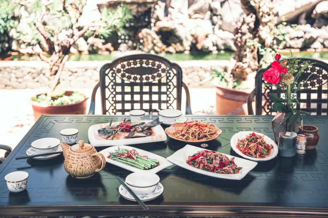 去原生態(tài)的菜園里摘自己喜歡的蔬菜,大廚精湛的手藝,把一個個原材料變成了一桌地道的納西美食。