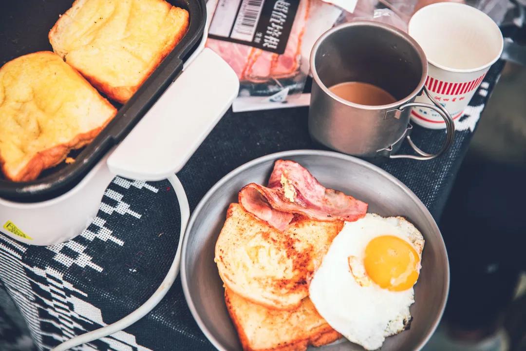 煎到剛剛好雞蛋,蛋白熟了,蛋黃還在是流動的液體,再加上培根和烤焦了的面包,真是令人心情愉悅的健康早餐。