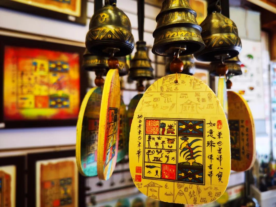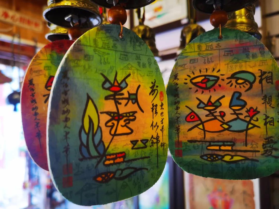 2003年,在麗江取景拍攝,由孫儷、何潤(rùn)東主演的電視劇《一米陽(yáng)光》爆火,隨之火起來(lái)的還有麗江古城和古城里的銅鈴。如今,古城五一街上還藏著一家與當(dāng)年的電視劇頗有淵源的銅鈴店,看似不起眼卻相當(dāng)受歡迎。店主是曾經(jīng)參與《一米陽(yáng)光》電視劇中銅鈴道具制作的民間手藝人,那么多年堅(jiān)持做銅鈴不曾改變,還注冊(cè)了“東巴吉祥鈴”的商標(biāo),如今店里所有的東巴吉祥鈴均為手繪原創(chuàng)作品,每一個(gè)都獨(dú)一無(wú)二。東巴吉祥鈴帶有祝福、好運(yùn)之意,快20年過(guò)去,依然是麗江的一道文化符號(hào)和象征。