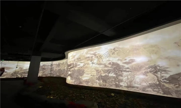 這里有亞洲第一百米納西風情數(shù)字長卷,它作為納西創(chuàng)世紀文化體驗中心鎮(zhèn)館之寶的《納西風情圖》,全長100米,高3米,從雪山秘境、桃源白沙、茶馬束河、署古黑龍?zhí)丁⒍κ⒋笱?、巍峨木府、大美拉市海七個板塊來進行呈現(xiàn)。