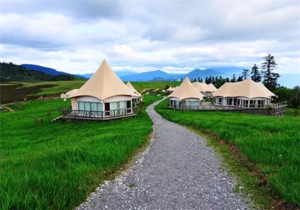 在那里,坐落著世界上海拔最高的精品帳篷營地——康藤·格拉丹帳篷營地。流線型的設(shè)計(jì)讓帳篷外觀更加簡潔,富于現(xiàn)代的樸素美感,與周圍環(huán)境融為一體。在帳篷內(nèi)就可以看到帳外群山巍峨和晚霞曙光,讓人零距離體驗(yàn)大自然的無窮魅力。
