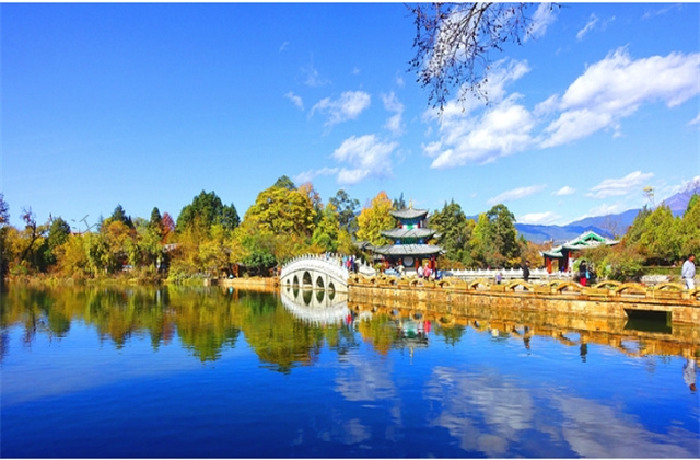 說來也奇怪,這條橋把黑龍?zhí)斗殖蓛蓚€池,照片左側的池水深且清澈,右邊的池水淺且微渾。當?shù)厥忻裥蓍e時間會在這里游玩喂魚,他們也都很自覺地只喂右邊池里的魚。我想麗江這么美跟當?shù)孛癖姷膼圩o也是有很大關系的吧。
