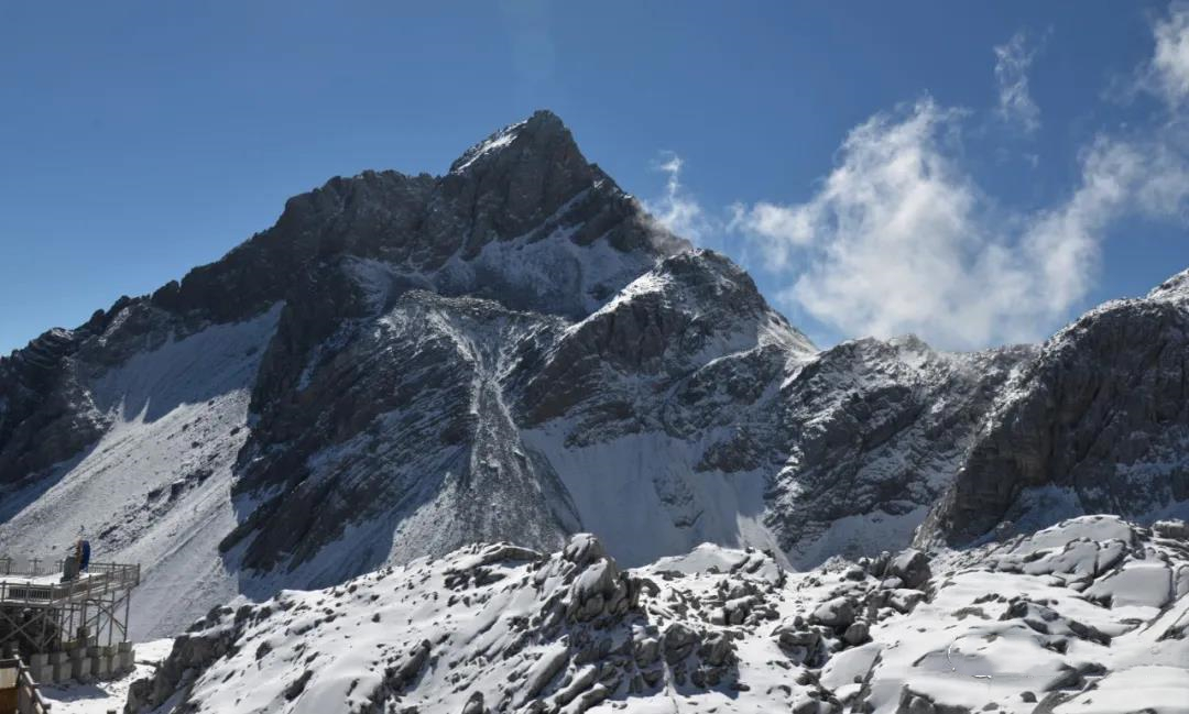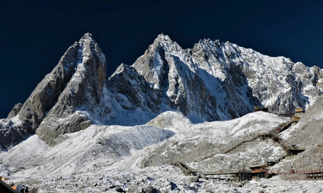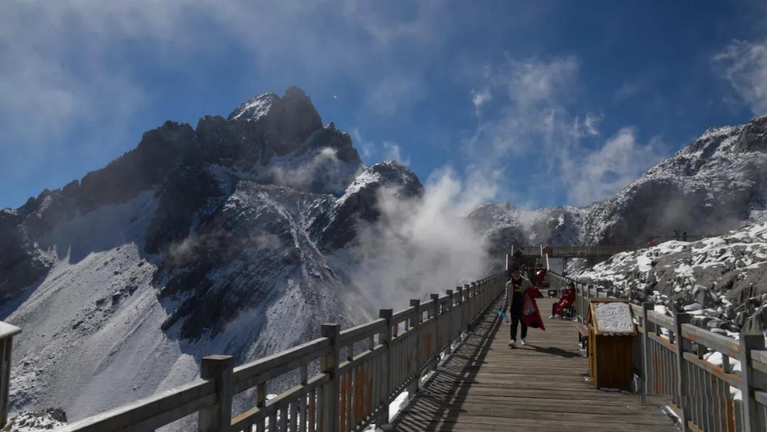 冰川公園位于海拔4506米扇子暴陡下方的冰川區(qū),沿著木制棧道上升約180米,直到的觀景平臺,這是最近距離接近玉龍雪山冰川的觀景勝地。天氣晴好,向下一眼望去,那一汪深藍(lán),便是著名的藍(lán)月谷了。