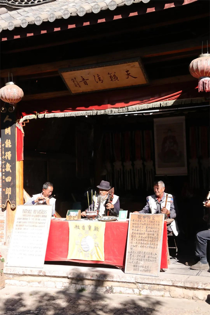 悠悠時(shí)光剪不斷吹不散,白沙古鎮(zhèn)算得上是麗江最安靜、最淳樸的地方了,這里的一切都是麗江最初的模樣,凹凸不平的石板路,就是歲月最好的見證者。漫步白沙古鎮(zhèn),街邊的房屋依舊保持著初心,沒有太多被時(shí)間改變的痕跡。白沙的時(shí)光好像比麗江任何地方都要柔軟和緩慢,在離古鎮(zhèn)入口不遠(yuǎn)處的地方,有一個(gè)天籟清音亭,里面有幾位正在演奏“白沙細(xì)樂”的老者,看到有游人經(jīng)過他們都會(huì)微笑,招呼大家進(jìn)來聽一聽這來自白沙的天籟之音。