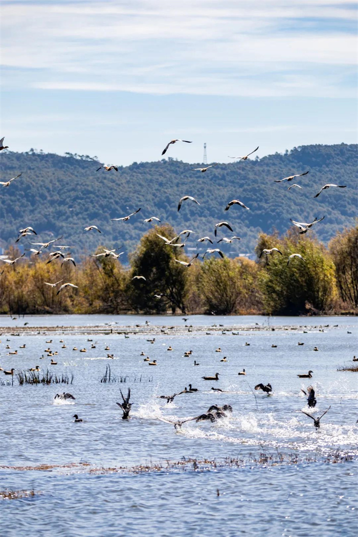 成群結(jié)隊(duì)如巨扇掠過湖面