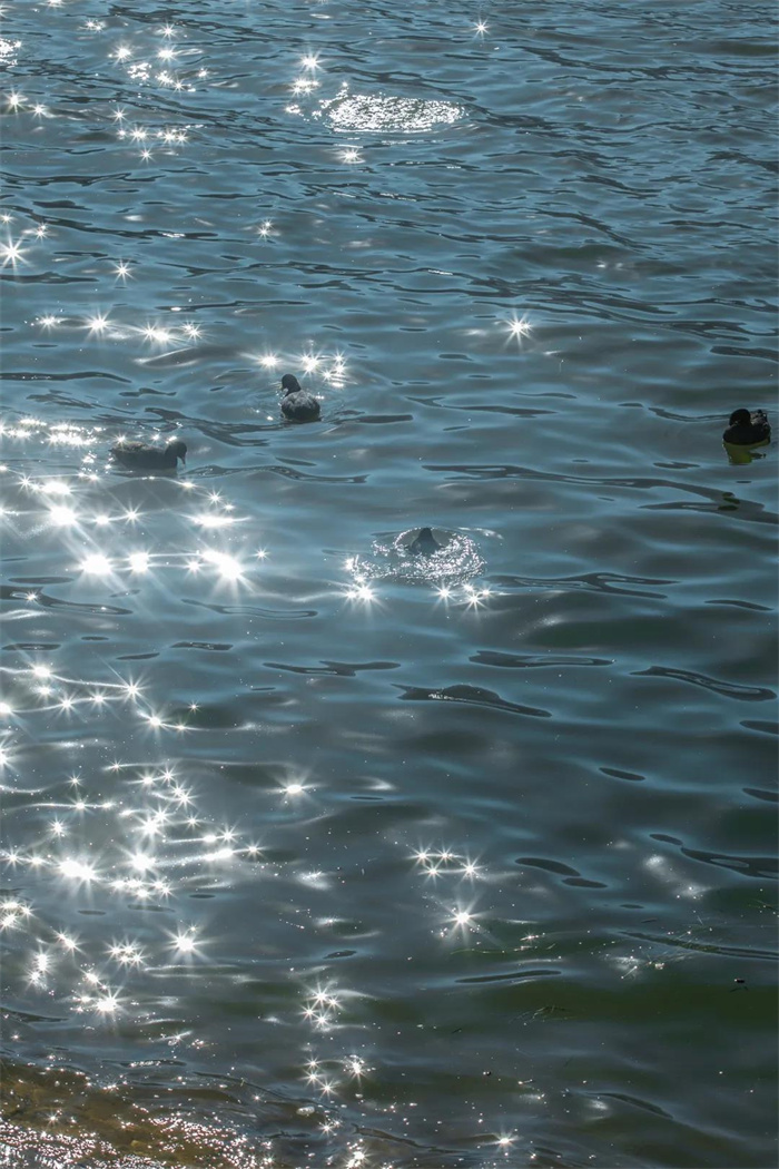 湖面藍(lán)潔清澈,倒影與實(shí)景相映成趣