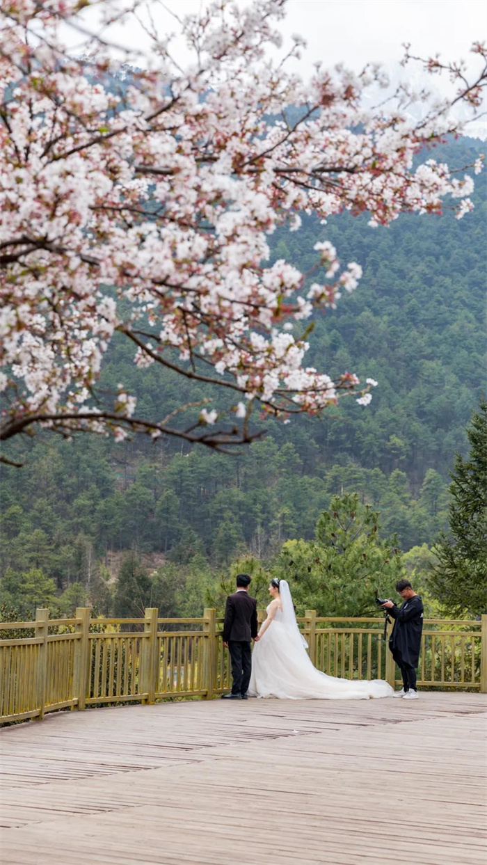 到過玉龍雪山景區(qū)的人說,景區(qū)最美的景色三分之一在藍月谷。雪山之下,綠植環(huán)繞,如寶石一般的湖面倒映著山水的變化,景致美麗無窮。徒步一段,登上高處俯視,這時的藍月谷不只是景色而已,眼前的山水都幻化成一幅雋美的畫面,鋪開的色彩毫不吝嗇地展示在面前,是一生都無法忘懷的美。沿著棧道緩緩行走,看平靜的湖面上游動的白云,與遠處皚皚的雪山。望著林間時不時飛動的鳥兒,頓時生了意境與靈性。眼前與遠處時不時有新人拍攝婚紗,是藍月谷另一種別致的美景。連竇驍都感嘆:“這里大概是一個婚姻的巢穴吧?!泵刻於紩袛?shù)不清的新人在這里拍下難忘的瞬間,一年四季,藍月谷由綠變藍,從藍到綠,變化之間也見證了那些美好的愛情故事。在湖中仰望雪山及天空,你會感嘆天地之遼闊;而走在湖邊上,能看見穿著婚紗禮服的他們露出笑容,甜蜜又幸福。藍月谷散發(fā)的浪漫,是否會讓你又開始相信愛情?