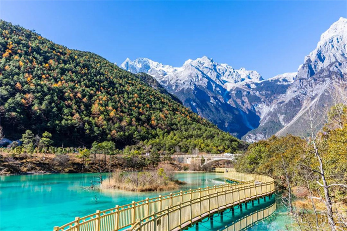 藍(lán)月谷位于玉龍雪山腳下,這片藍(lán)是自然賜予的藍(lán),更是無可挑剔的純凈藍(lán),被山峰密林包圍的藍(lán)月谷在天氣晴朗時(shí),可以看見湖水猶如藍(lán)寶石般鑲嵌在其中,藍(lán)月谷罕見的人間景色,讓無數(shù)人為其傾倒。