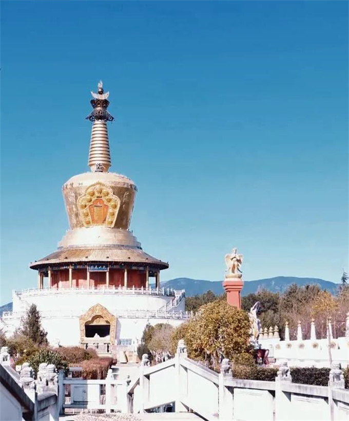 在麗江古城的外圍蛇山之上還有一座藏傳佛教-麗江大金塔,巍峨的矗立山巔。金閃閃的塔尖與玉龍雪山相得益彰。傳統(tǒng)的藏傳佛寺建筑風格有著濃郁的東南亞風情。始建于唐朝的麗江大金塔已有千年歷史。是麗江高原之上的悠久人文風景。