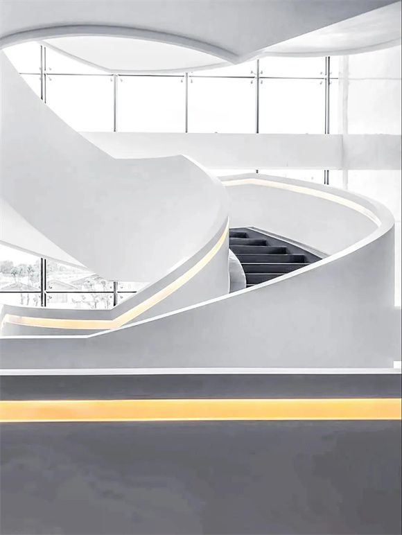 酒店內(nèi)部尤為吸睛的當屬旋轉(zhuǎn)樓梯,純白的外衣散發(fā)著云貝般的光澤,溫暖的燈帶順著樓梯延展,優(yōu)雅而頗具未來感。由下仰望,如云朵慢慢升騰;自上俯瞰,又如花朵悄然綻放,隨手一拍都是INS風爆棚的美照,儼然已成為酒店的網(wǎng)紅打卡點。