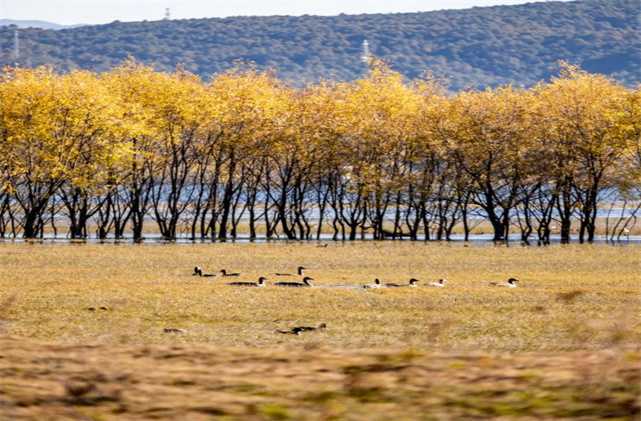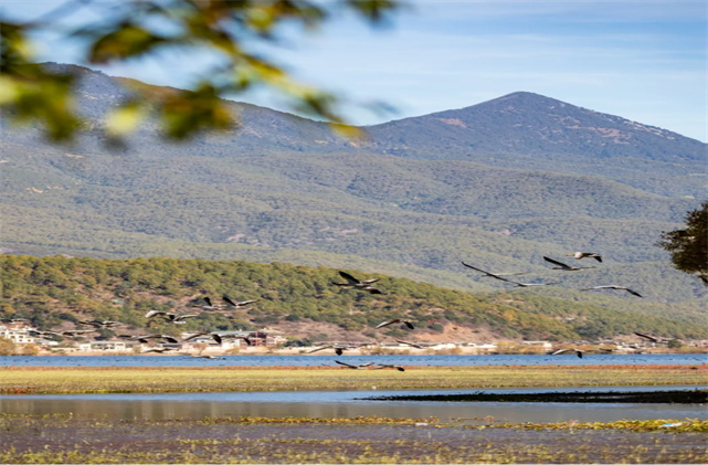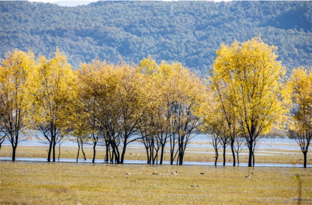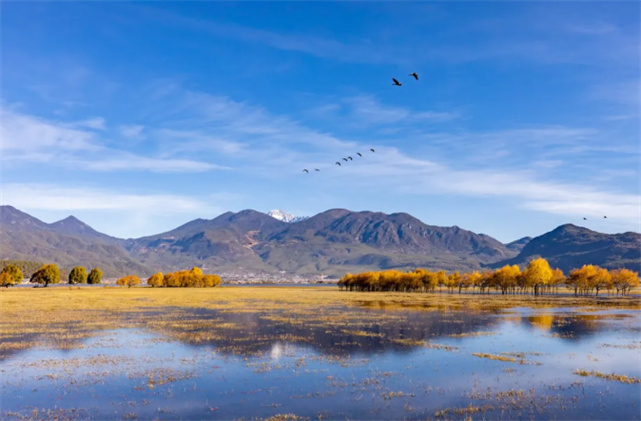 不但鳥多,風(fēng)景也正好看!初冬的拉市,湖光山色,層林盡染,候鳥的倩影點(diǎn)綴其間,相映成韻。目光所及,皆是詩畫。