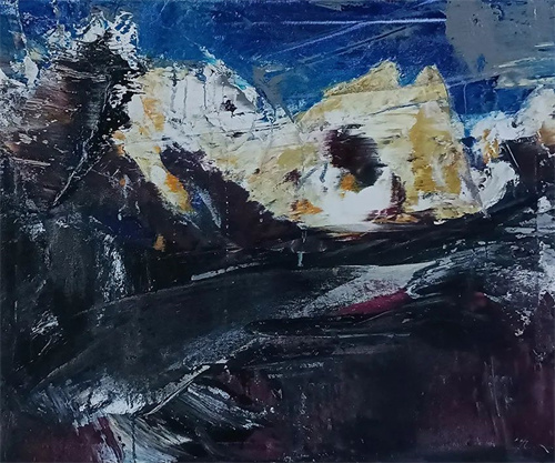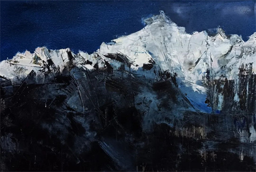 隨著年歲和閱歷漸長,在八九的畫作中,雪山有了別人看不到的一面。躍然于畫布上的是沉淀、是總結(jié)、更是對(duì)家鄉(xiāng),對(duì)祖國大好河山的喜愛之情。