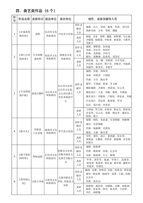 現(xiàn)將云南省第五屆群眾文化“彩云獎(jiǎng)”獲獎(jiǎng)作品名單予以公示,公示期自即日起7個(gè)工作日(11月8日—11月16日)。如有異議,請?jiān)诠酒趦?nèi),以書面方式實(shí)名反映,并提供異議理由和有關(guān)依據(jù)、證據(jù),以及反映人姓名、工作單位(或反映機(jī)構(gòu)名稱)、聯(lián)系方式。