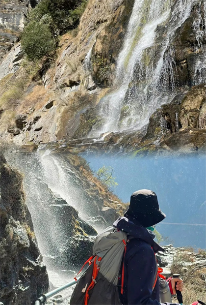 “觀音瀑”——整個虎跳峽徒步的精華,驚險的懸崖石板路,美麗的瀑布從山間傾瀉而下。這條山澗從高處流下來,直接砸在徒步道路上,然后漫 過路面,形成下半截瀑布繼續(xù)跌下懸崖。繼續(xù)前行,我們會遇到一座觀音廟。廟里可以燒香祈福,隨喜功德。觀音廟下方有一家咖啡店,喜歡 咖啡的朋友可以稍作休息,享受一杯香濃的咖啡。
