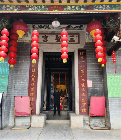 圣宮位于束河古鎮(zhèn)仁里路龍泉山下,據(jù)乾隆《麗江府志略》載:原為九鼎龍王廟。清光緒年間(公元1875年—1908年),由當(dāng)?shù)卮迕窀慕槿m,平面布局為四合院,呈座西朝東向,其中東樓、南樓倚山就勢,設(shè)一層地樓,正殿依山就勢而建,西面墻基為天然巖壁,蔚為壯觀。其內(nèi)供奉觀音菩薩、皮匠祖師孫臏和九鼎龍王塑像圣宮位于束河古鎮(zhèn)仁里路龍泉山下,據(jù)乾隆《麗江府志略》載:原為九鼎龍王廟。清光緒年間(公元1875年—1908年),由當(dāng)?shù)卮迕窀慕槿m,平面布局為四合院,呈座西朝東向,其中東樓、南樓倚山就勢,設(shè)一層地樓,正殿依山就勢而建,西面墻基為天然巖壁,蔚為壯觀,其內(nèi)供奉觀音菩薩、皮匠祖師孫臏和九鼎龍王塑像