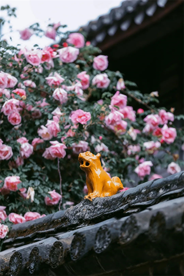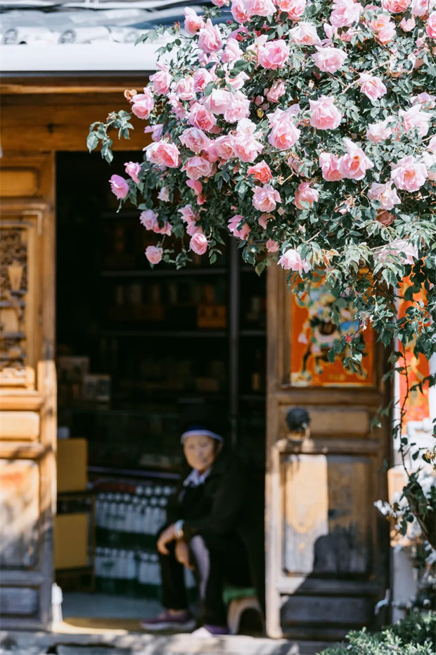 最令人稱奇的是它野蠻生長的姿態(tài)。在江南需精心呵護的月季,到了麗江竟顯露出驚人的生命力——一藤便能成景,孤