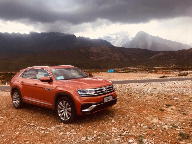 剛剛遠(yuǎn)遠(yuǎn)的感受了途昂X帶來(lái)的視覺(jué)沖擊,但當(dāng)站在它面前的時(shí)候,還是感受到了“大”。我眼前的這輛途昂X是熾焰橙色,屬最年輕的車漆顏色,跳躍的熾焰橙在玉龍雪山下顯得尤為耀眼,符合途昂X的運(yùn)動(dòng)氣息。
