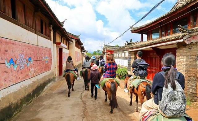 茶馬古道存在于我國西南地區(qū),是以馬幫為主要交通工具的民間國際商貿(mào)通道。然而顧名思義就是以前的人利用馬兒開辟出來運(yùn)送貨物的路,以前利用馬兒馱著貨物而開辟的道路,現(xiàn)在則是馱著我們上山下坡的走,全層大約是2小時(shí)的路程,每隊(duì)馬隊(duì)有一個(gè)大叔指揮著,在后面跟著幾匹馬兒,而大叔不時(shí)喊出幾個(gè)暗語,馬兒也好像能聽懂似的乖乖一個(gè)跟著一個(gè),感覺有點(diǎn)厲害。