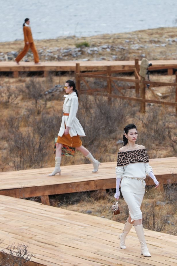 在延續(xù)XG時(shí)尚優(yōu)雅的品牌風(fēng)格之上增添了荒野游牧風(fēng)的墨彩,模特置身于無垠的原野和牧場(chǎng)之中游走自如,將時(shí)下潮流和自然藝術(shù)糅合、碰撞,近300米原生態(tài)實(shí)木T臺(tái),100多頭牛羊群,近6000米平方的秀場(chǎng)空間。最終匠心鑄造了一個(gè)天然的舞臺(tái)和恢弘秀場(chǎng),以多平臺(tái)多渠道的呈現(xiàn)方式令場(chǎng)內(nèi)外觀眾都達(dá)到了最佳視覺體驗(yàn)。