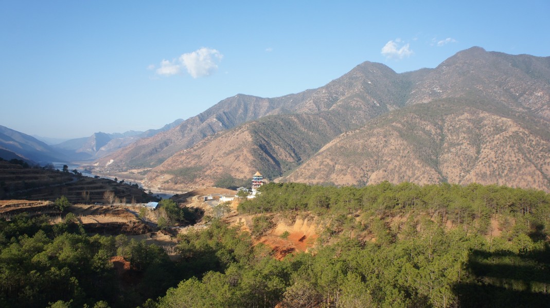 第二段:到達(dá)tinas后,如果感覺自己沒問題還可以就可以去中虎跳,從tinas過橋后從天梯客棧下到中虎跳谷底,該段路是當(dāng)?shù)乩习傩兆约盒薜穆芬虼诵枰o10元過路錢,這段路我挑戰(zhàn)了,個(gè)人感覺是跟28道彎差不多,先從公路下到谷底30-40分鐘左右,比較輕松,但是要從谷底上到公路(因?yàn)橐豻inas坐車)就十分痛苦了,我上來以后對自己說“老子以后再也不來了,太累了”,這段路程自己感覺,時(shí)間充裕可以挑戰(zhàn),提示:會很累