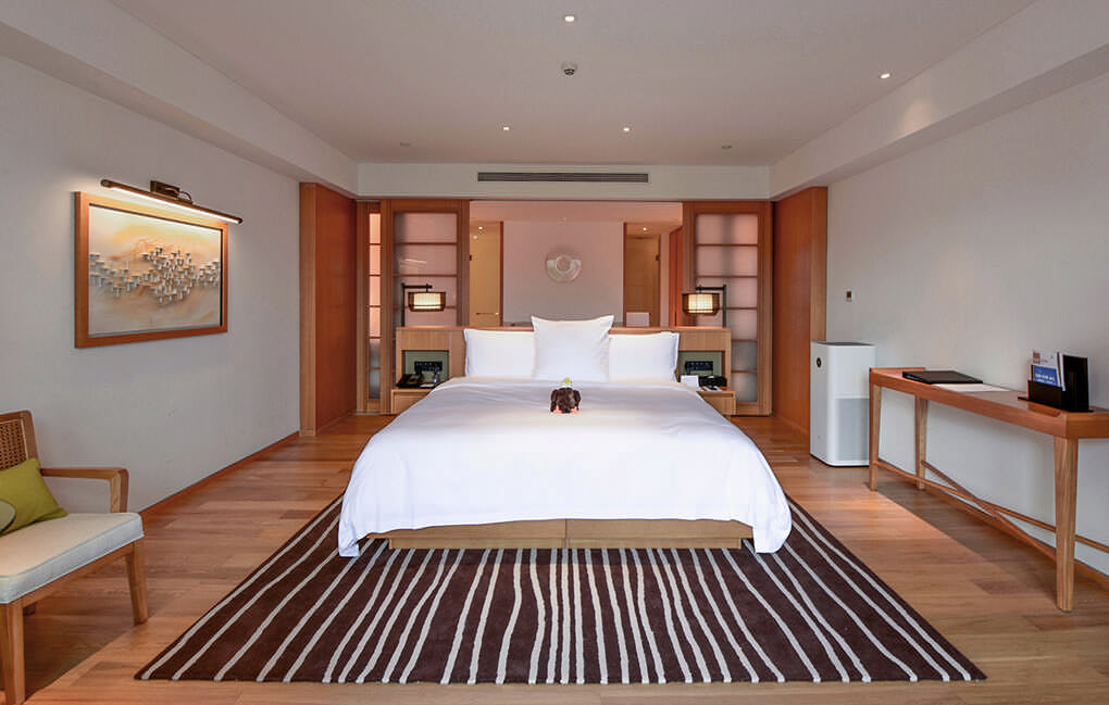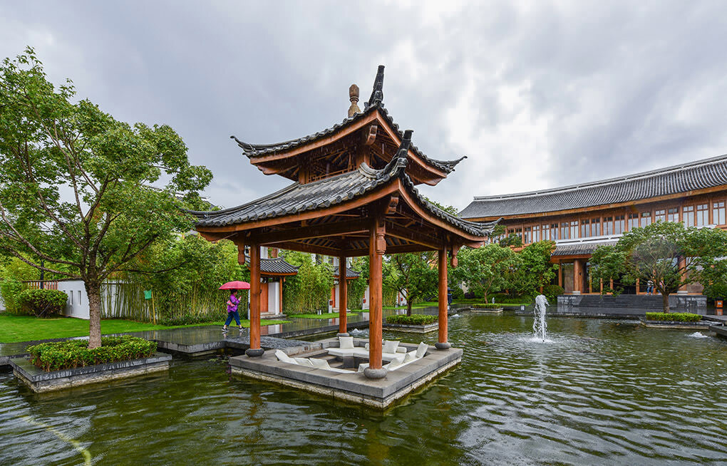 酒店擁有455間風情客房和86棟豪華別墅,設計以云南納西族傳統(tǒng)建筑風格為主,飛檐翹角的瓦屋建筑巧妙融匯了現(xiàn)代時尚元素和納西特色之美,營造了獨具麗江特色的舒適空間。