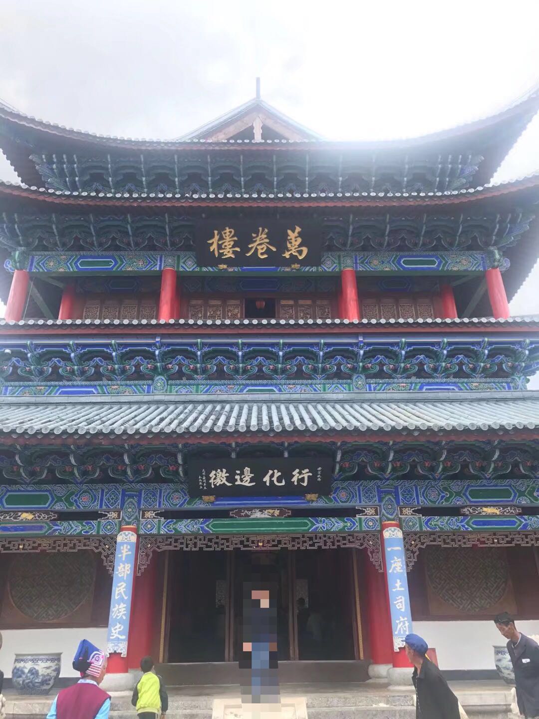 它是納西民族發(fā)展史中最值得大書(shū)特書(shū)的一筆。有學(xué)者指出,"不到木府,等于不到麗江"。留于世的明、清木府古建筑,建筑之宏偉、宮殿之輝煌、雕刻之精致、構(gòu)件之玲瓏、繪畫(huà)之璀璨,真可謂美輪美奐,無(wú)與倫比。木府是麗江木氏土司衙門(mén)的俗稱(chēng),木氏土司家族歷經(jīng)元、明、清三個(gè)朝代,鼎盛時(shí)期木府占地一百多畝,有近百座建筑,是八百年大研古城的心臟所在。盡管它只是一座土司的宅院,但它的奢華與恢宏,并不亞于任何一座王公貴胄的官邸。據(jù)《麗江府志》記載,從前的木府殿堂巍峨、布局嚴(yán)謹(jǐn),僅中軸線(xiàn)就有369米長(zhǎng),中軸線(xiàn)上分別有議事廳、萬(wàn)卷樓、護(hù)法殿等大殿,兩側(cè)房屋羅列,樓臺(tái)亭閣,數(shù)不勝數(shù);花園回廊,風(fēng)格別致。