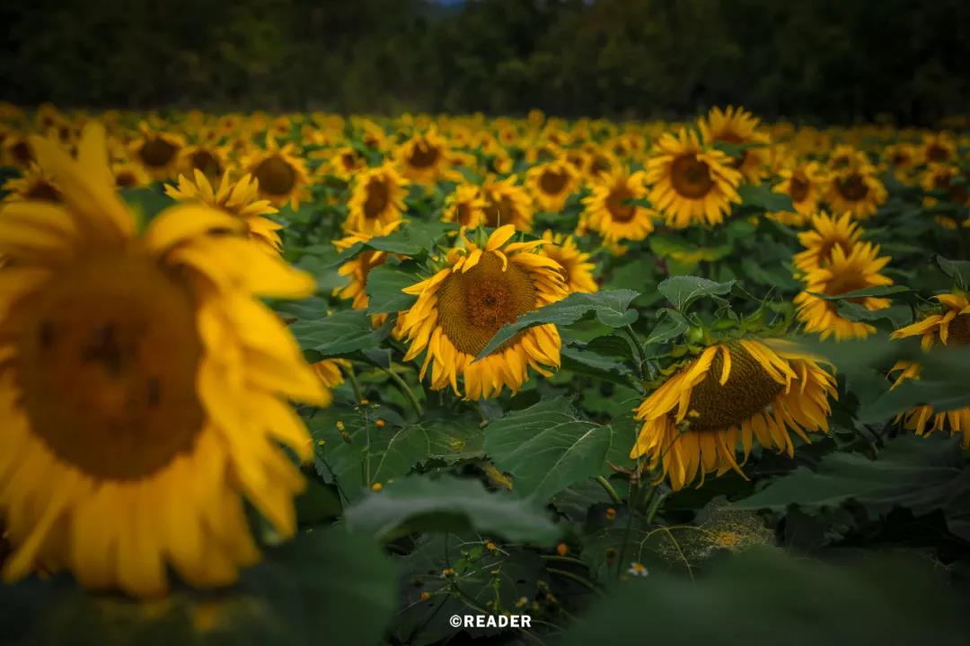 大片的金黃,一下子就牢牢抓住了你的目光,這時(shí),你只會(huì)遵循身體的本能,下車,奔向這片向日葵的海洋。