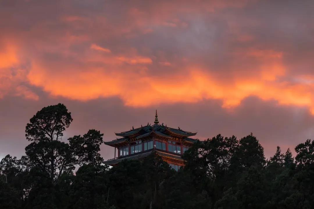 日漸西移,倦鳥知還,麗江古城進(jìn)入了另外一個(gè)華美的世界。滿天的晚霞,像是給這座古城披上了一層金紗,夜晚來臨之前的時(shí)刻,明與暗的光影交錯(cuò),似真似幻。
