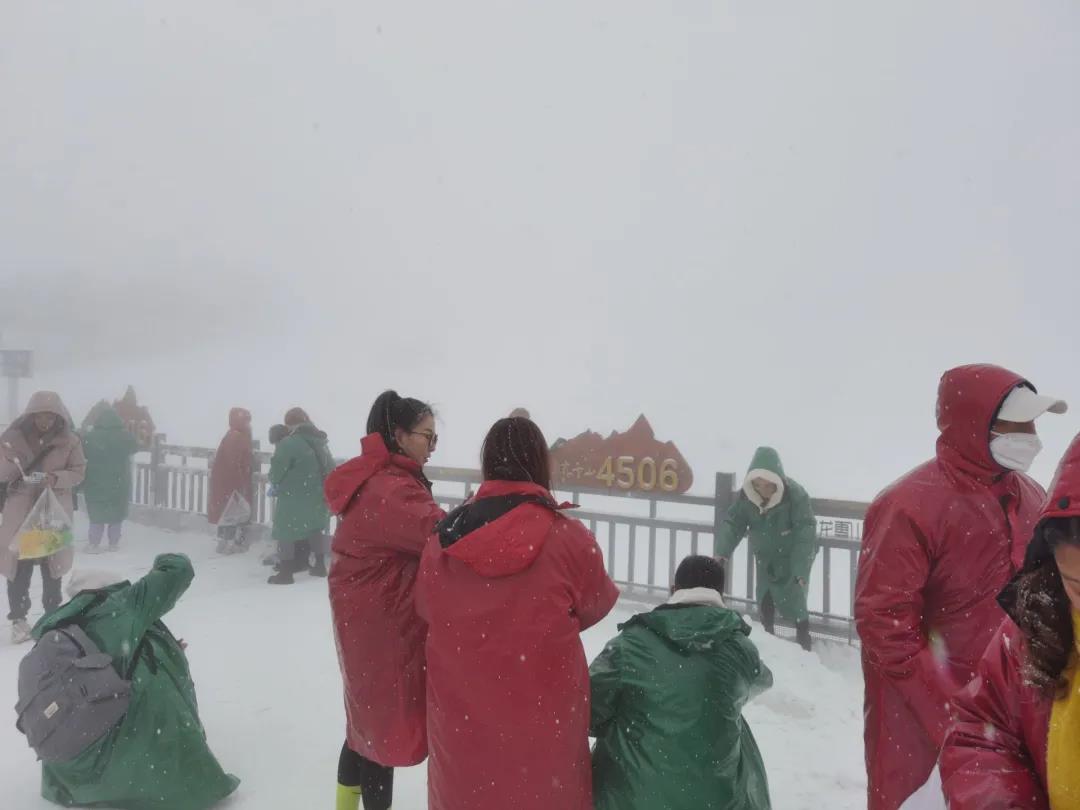 乘坐索道來到冰川公園,飄飄灑灑的雪花,讓前來登山的市民、游客驚喜不已。大家難以掩飾內(nèi)心的激動,紛紛沉醉在這場春雪里。