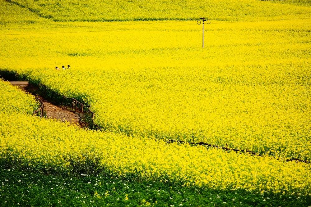 清明左右,自駕驅(qū)車來到在束河的西山游路,這時的油菜花已經(jīng)大片大片的盛開,如果你是我,就應(yīng)該放下手上的工作,去看看束河的油菜花海,站在田梗處,看一看這里的山山水水,似乎也似被穿上了一層金色的外衣,就連田野上的一抹翠綠,也成了這片花海的點綴。成了生機勃勃的宣傳詞,如青春一般,讓人不舍。